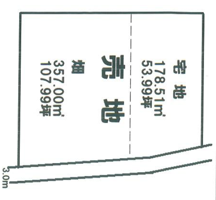 | 土地面積 | 公535.51㎡(161.99坪) | 接道 | 東側(公道)幅 約3.0m |